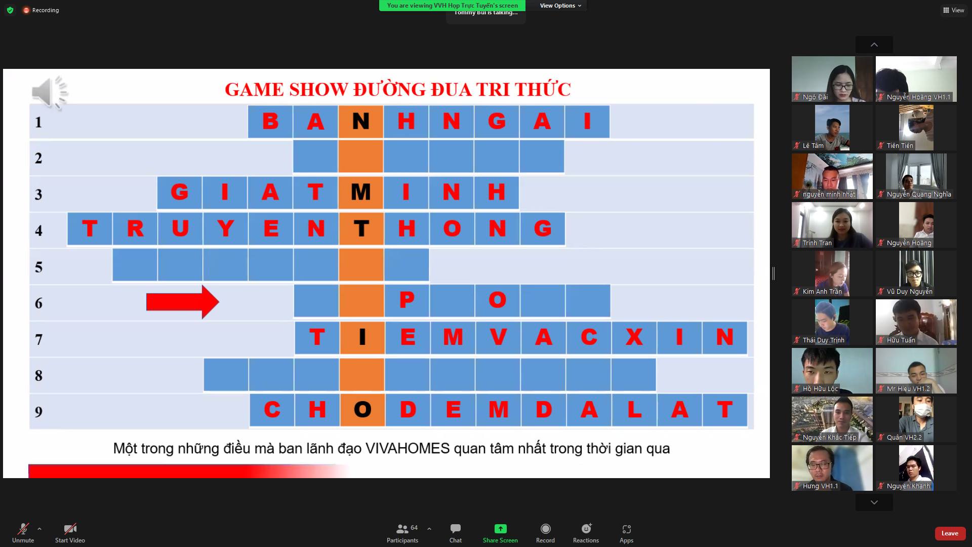 💥💥Để thúc đẩy các hoạt động phong trào văn hóa văn nghệ của công ty cũng như tạo sân chơi lành mạnh và bổ ích trong mùa dịch căng thẳng. Thay mặt công ty PHCNS đã đứng ra tổ chức cuộc thi “GIẢI MÃ Ô CHỮ - ĐƯỜNG ĐUA TRI THỨC”. Nhằm nâng cao tinh thần, lạc quan và hy vọng đảm bảo chiến thắng dịch bệnh bứt phá thành công cho tập thể cán bộ nhân viên của công ty. Với giải thưởng lên tới triệu đô, đem tới nhiều bất ngờ và hấp dẫn cho toàn bộ CB-NV của VIVAHOMES. Qua việc tổ chức trò chơi, sự tham dự nhiệt tình của Anh/chị đem lại sự thành công của chương trình kết quả ngoài mong đợi. Kết quả vòng đầu tiên(12/9/2021) của trò chơi được công bố như sau: